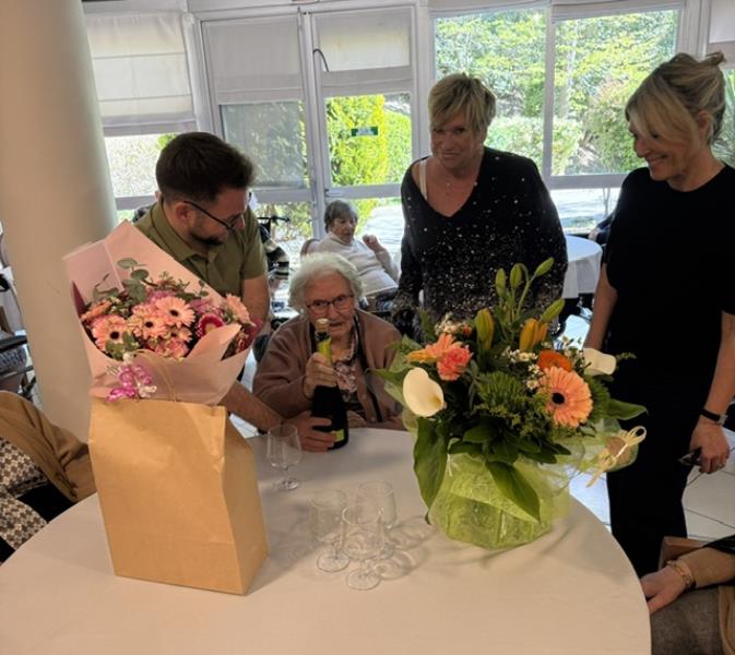 Résidents et équipe se sont réunis pour lui offrir une belle fête à cette occasion si particulière, marquant comme il se doit ce magnifique centenaire.
