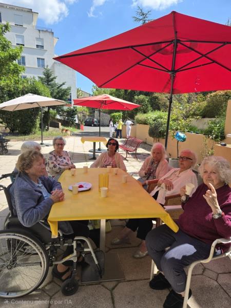Nous avons passé une excellente après-midi, remplie de rires, de chansons et de bonne humeur ! Installés sur la terrasse, nous avons partagé un moment chaleureux autour d'un gâteau et de boissons fraîches.