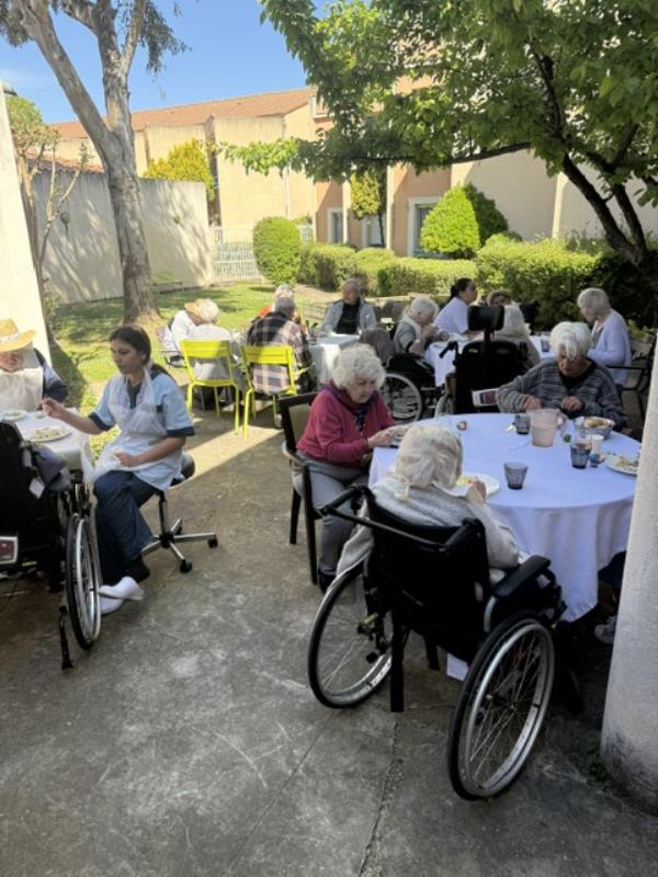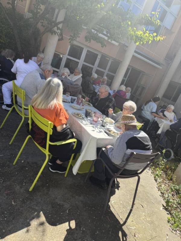 Installés en extérieur, sous une météo douce et ensoleillée, ils ont partagé un repas convivial dans un cadre apaisant.